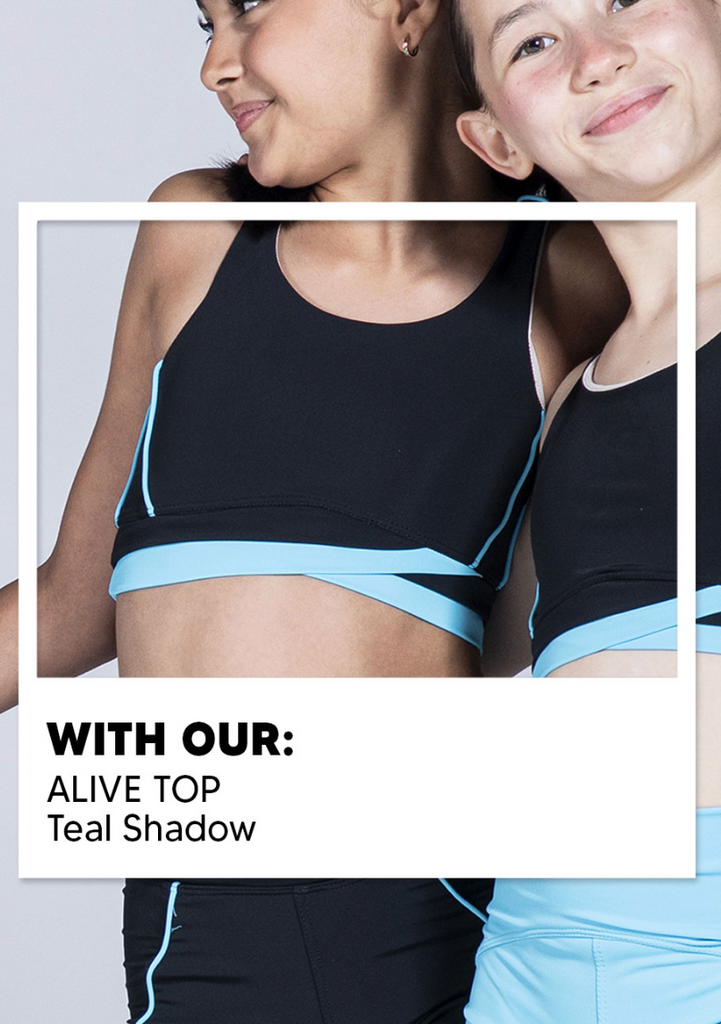 Get ready to shine with the Alive Top! This comfy, supportive top is perfect for young dancers who want to move freely and look great. With fun color combos, it’s easy to mix and match with our Discover Shorts for a cute, coordinated vibe. Dance your heart out and express yourself in style with the Alive Top—your new go-to for class and performances!